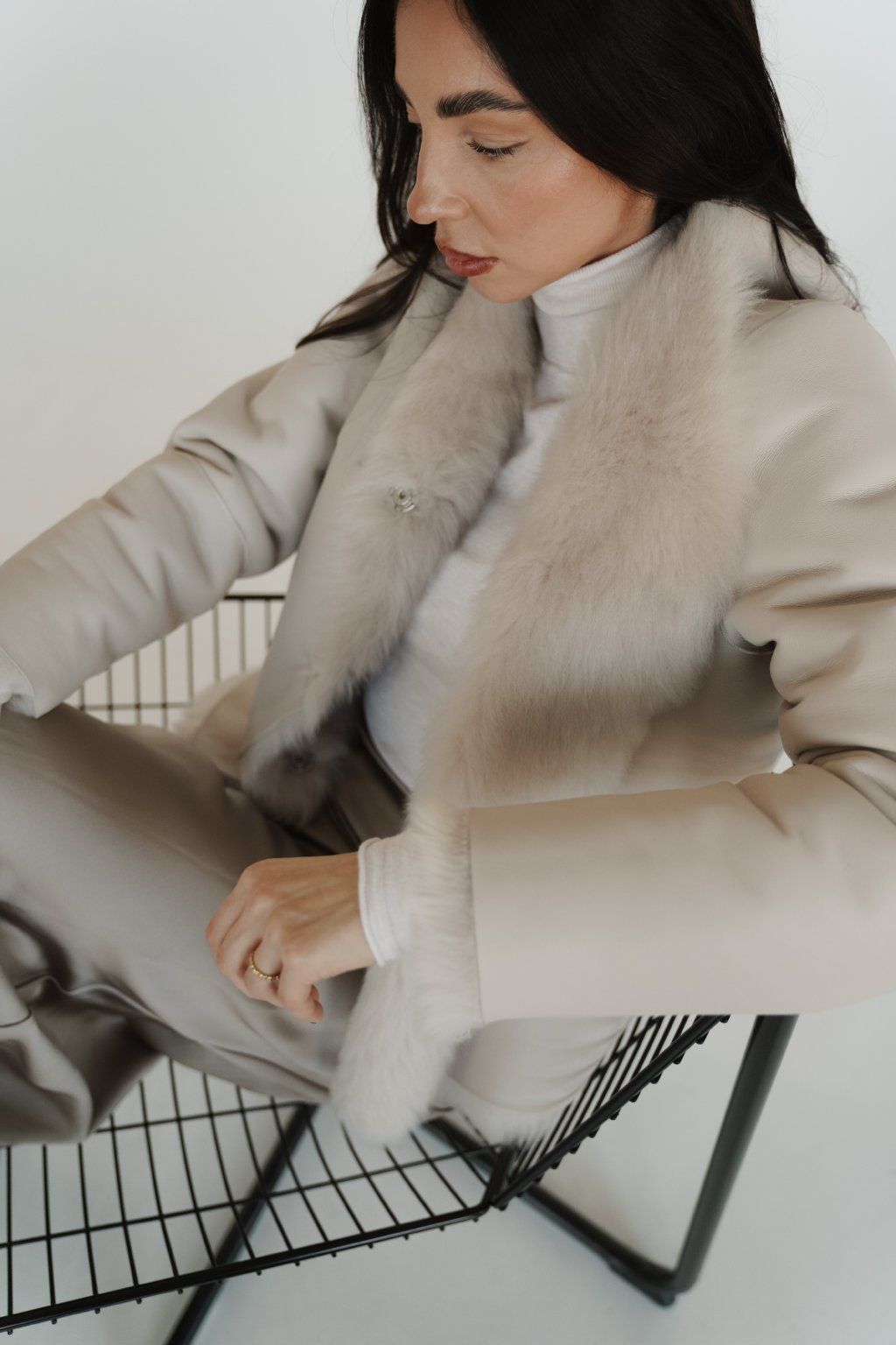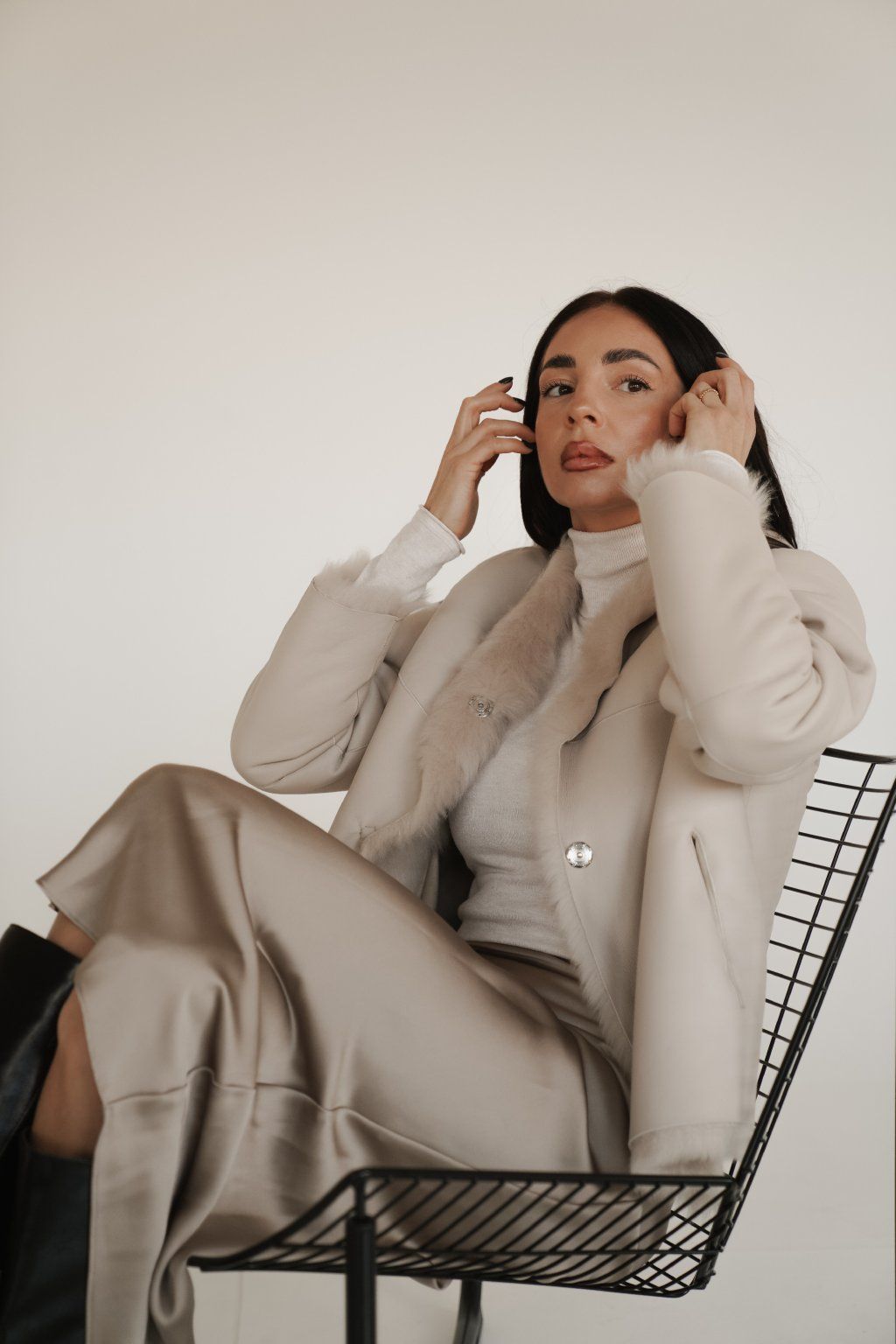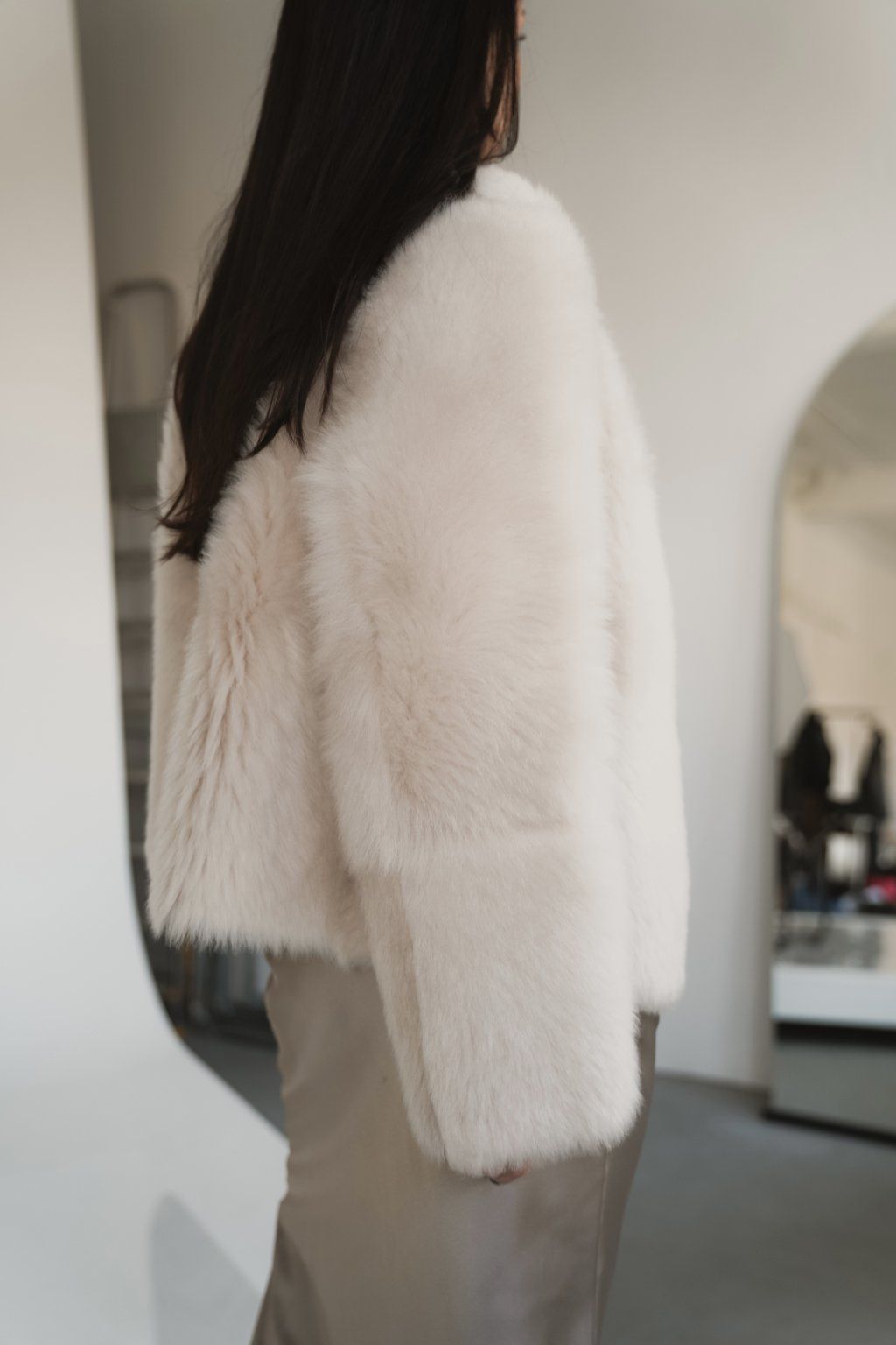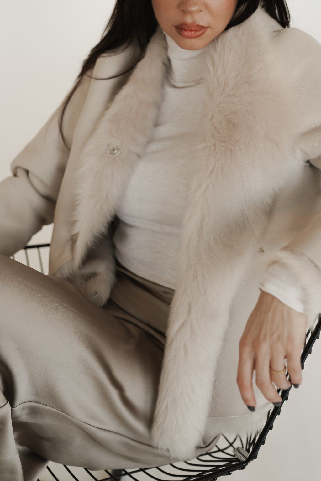 Reversible women's jacket made of luxurious premium shearling material in a beautiful cream color. Incredibly warm, timeless and easy to combine.