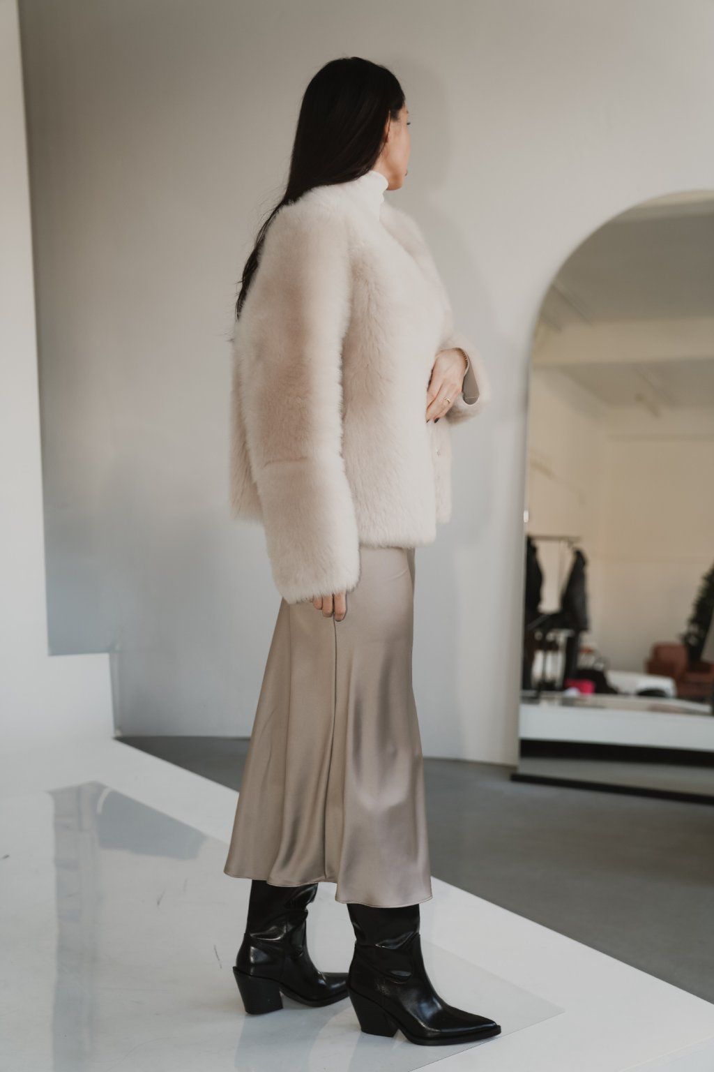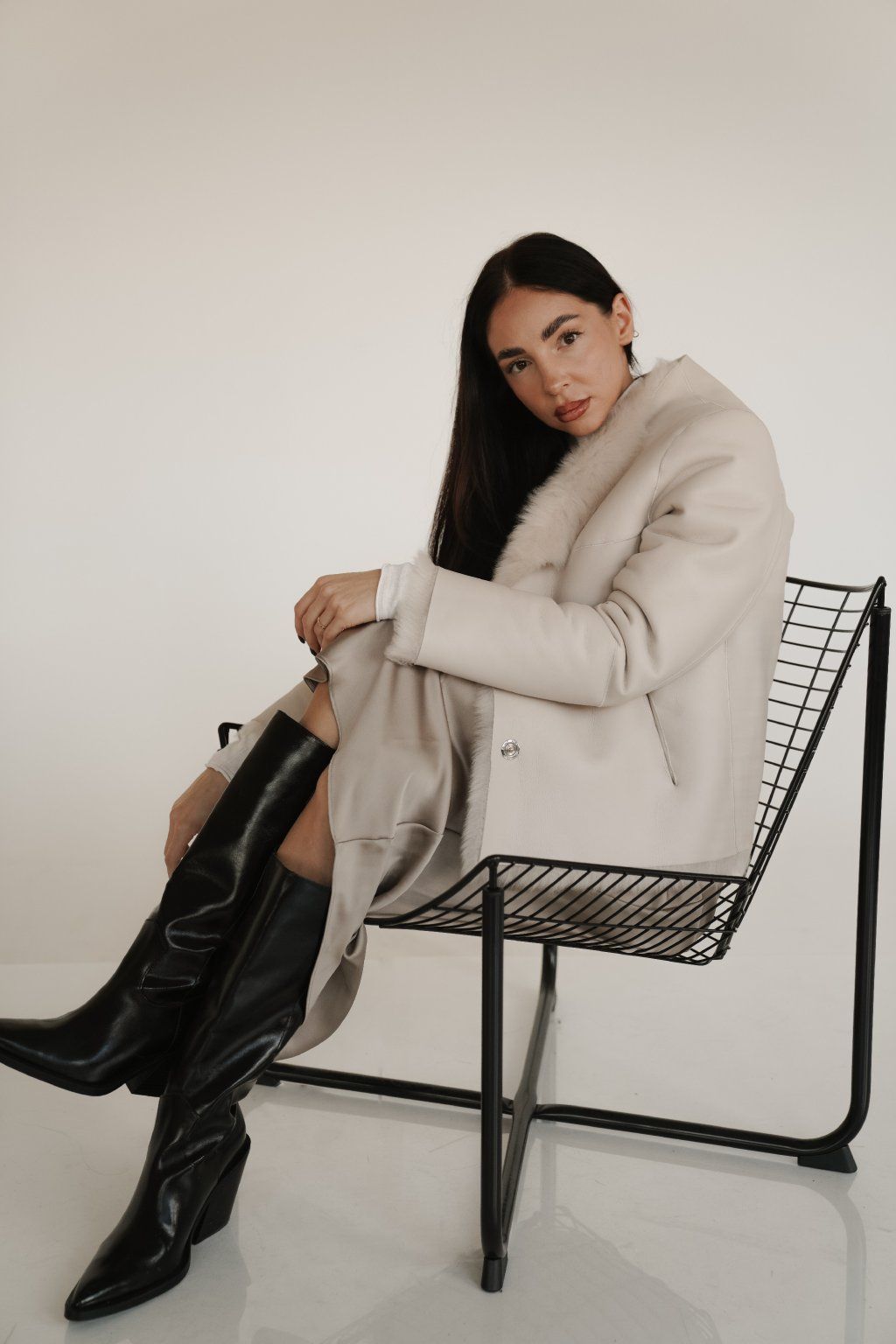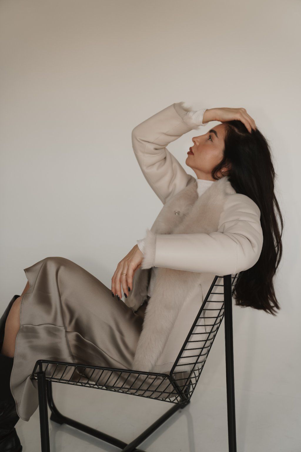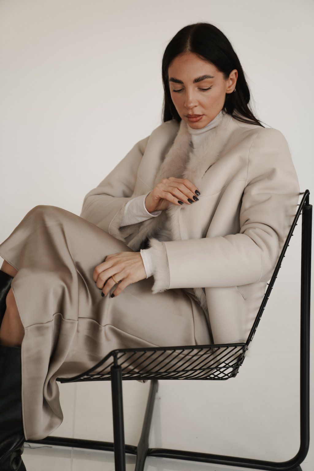 Reversible women's jacket made of luxurious premium shearling material in a beautiful cream color. Incredibly warm, timeless and easy to combine.