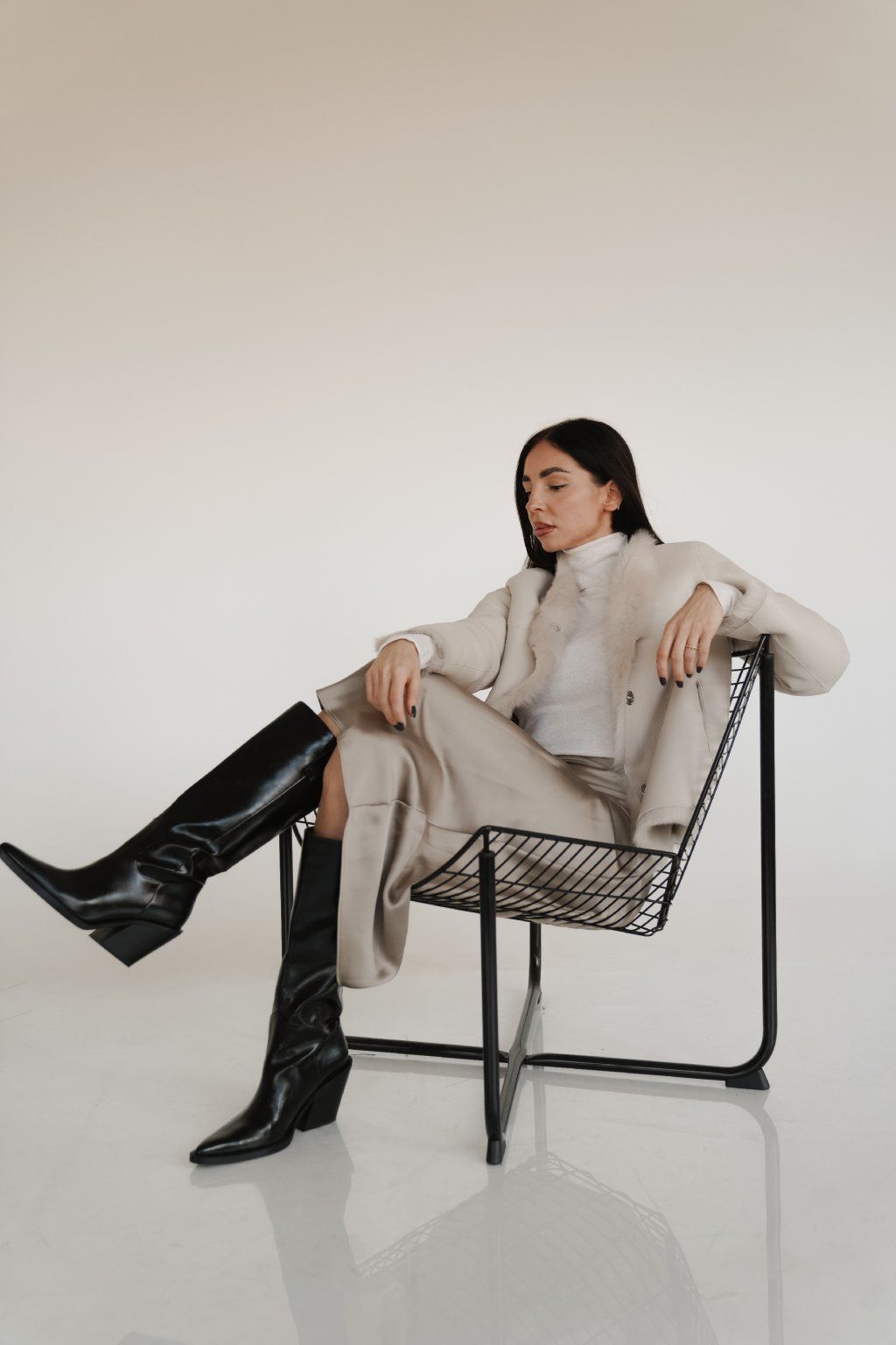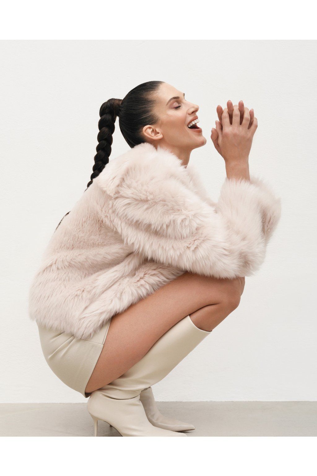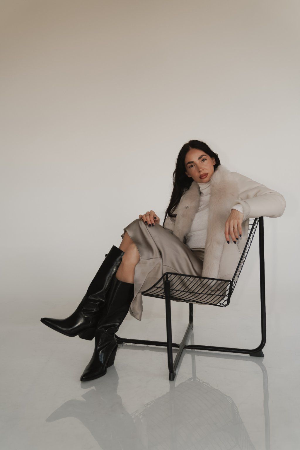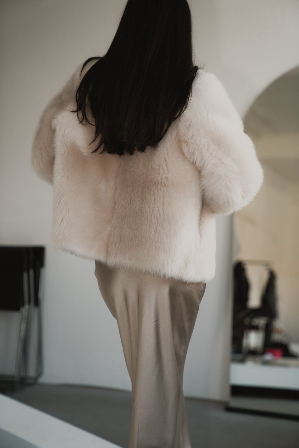Reversible women's jacket made of luxurious premium shearling material in a beautiful cream color. Incredibly warm, timeless and easy to combine.