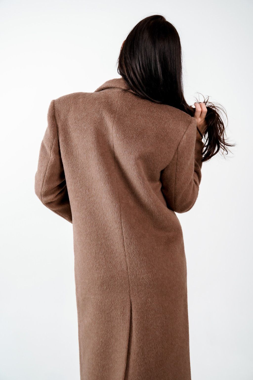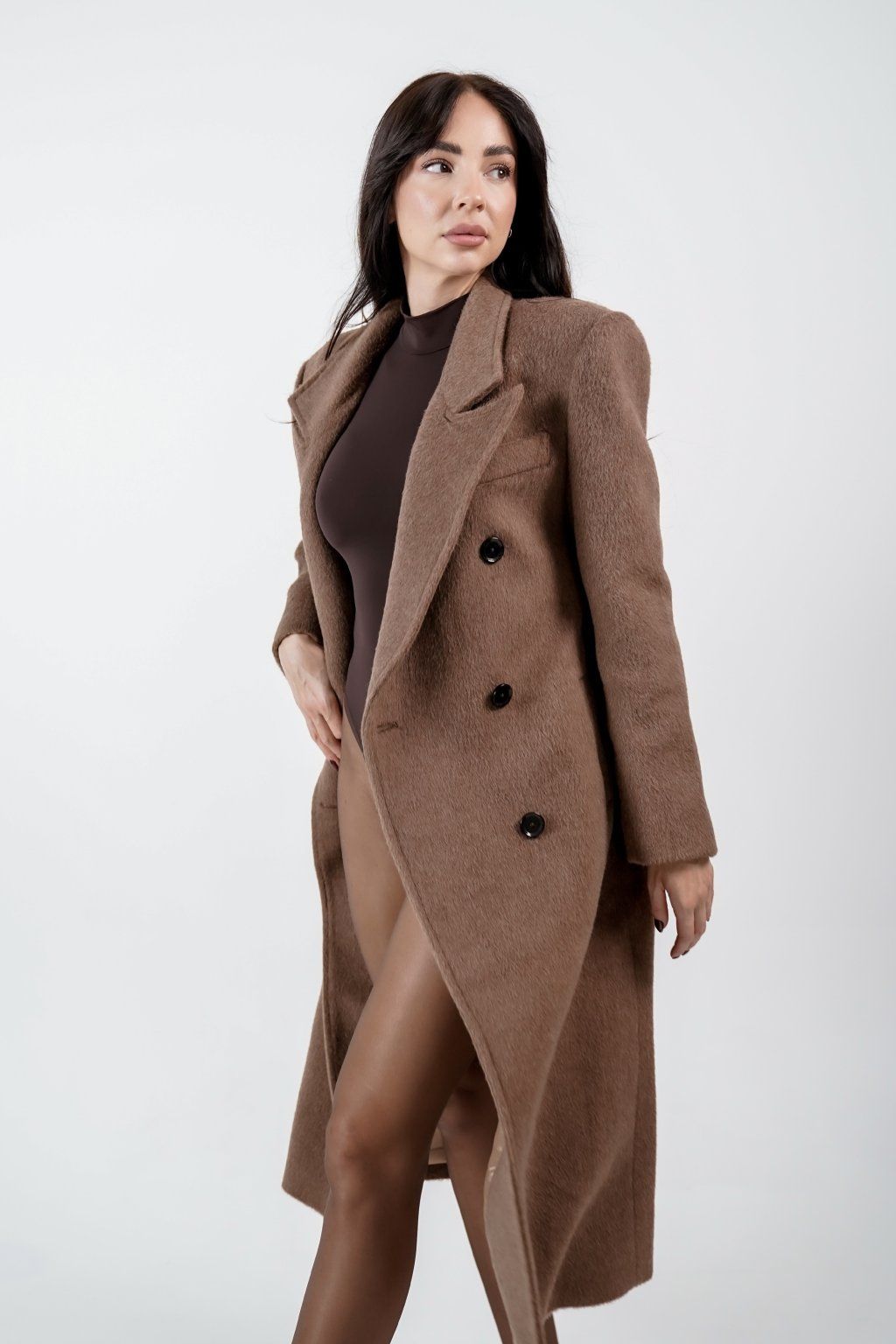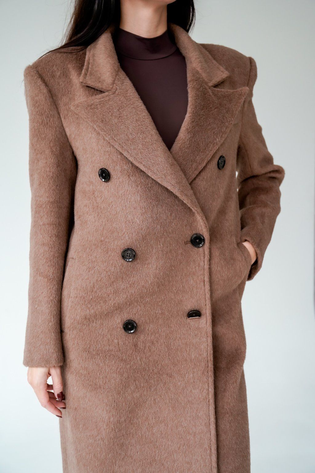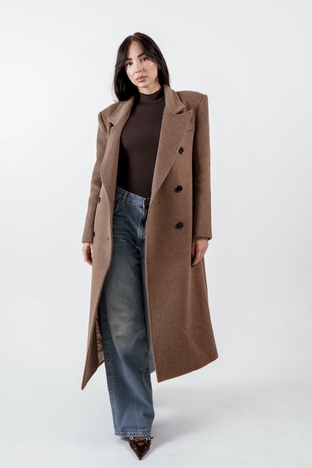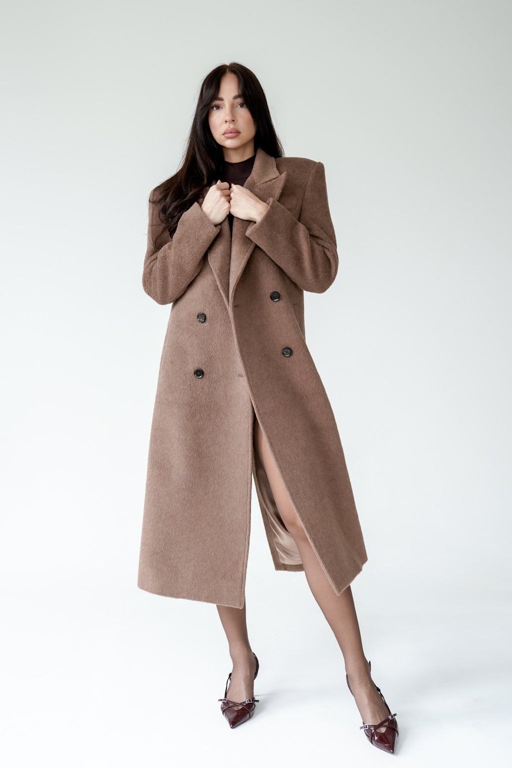 The coat has a straight, elongated cut with a double-breasted fastening and pronounced lapels. Thanks to its minimalist design, it becomes a universal piece - you can easily match it with jeans and a T-shirt for a casual look, as well as with evening dresses or business outfits.